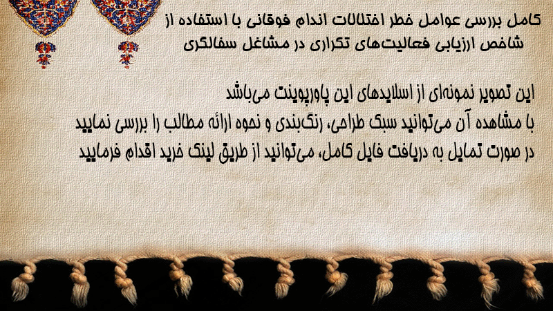 پاورپوینت کامل بررسی عوامل خطر اختلالات اندام فوقانی با استفاده از شاخص ارزیابی فعالیتهای تکراری در مشاغل سفالگری