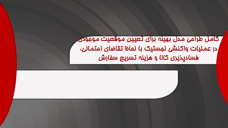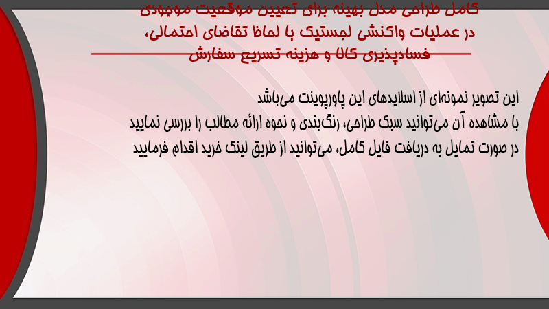 پاورپوینت کامل طراحی مدل بهینه برای تعیین موقعیت موجودی در عملیات واکنشی لجستیک با لحاظ تقاضای احتمالی، فسادپذیری کالا و هزینه تسریع سفارش