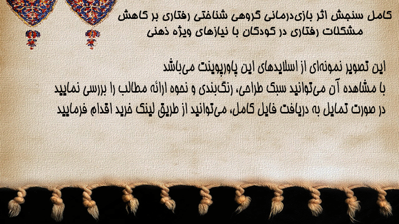 پاورپوینت کامل سنجش اثر بازیدرمانی گروهی شناختی رفتاری بر کاهش مشکلات رفتاری در کودکان با نیازهای ویژه ذهنی