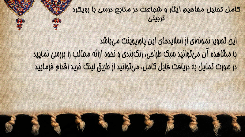 پاورپوینت کامل تحلیل مفاهیم ایثار و شجاعت در منابع درسی با رویکرد تربیتی