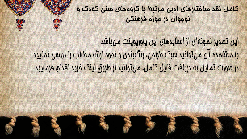 پاورپوینت کامل نقد ساختارهای ادبی مرتبط با گروههای سنی کودک و نوجوان در حوزه فرهنگی