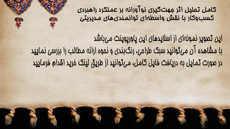 پاورپوینت کامل تحلیل اثر جهتگیری نوآورانه بر عملکرد راهبردی کسبوکار با نقش واسطهای توانمندیهای مدیریتی