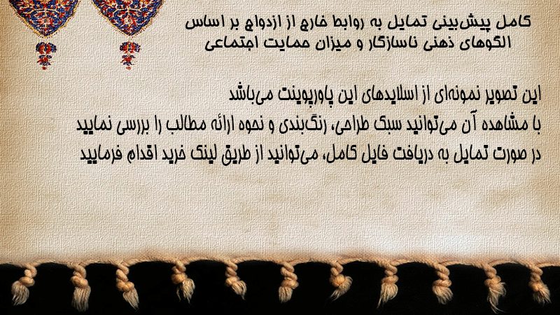 پاورپوینت کامل پیشبینی تمایل به روابط خارج از ازدواج بر اساس الگوهای ذهنی ناسازگار و میزان حمایت اجتماعی