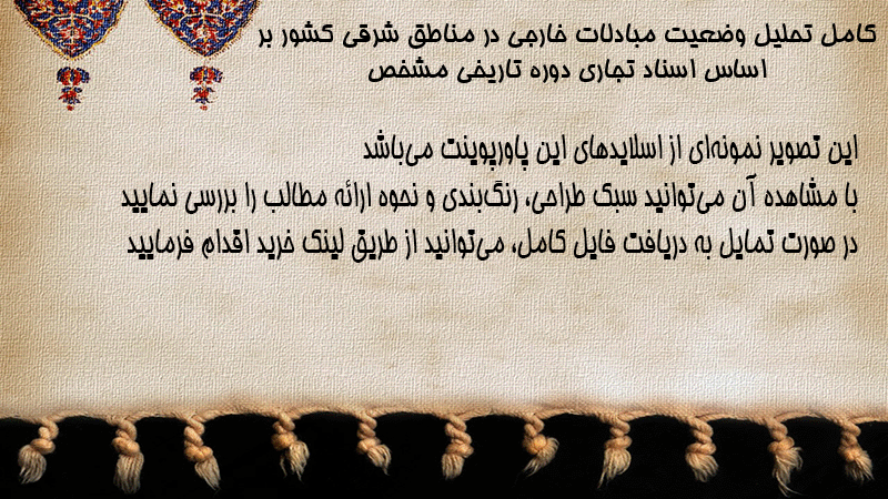 پاورپوینت کامل تحلیل وضعیت مبادلات خارجی در مناطق شرقی کشور بر اساس اسناد تجاری دوره تاریخی مشخص