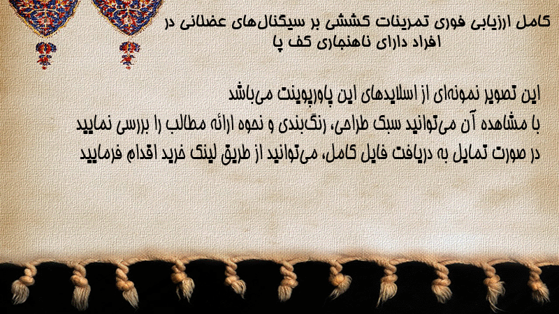 پاورپوینت کامل ارزیابی فوری تمرینات کششی بر سیگنالهای عضلانی در افراد دارای ناهنجاری کف پا