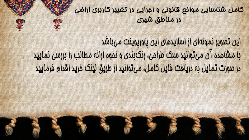 پاورپوینت کامل شناسایی موانع قانونی و اجرایی در تغییر کاربری اراضی در مناطق شهری