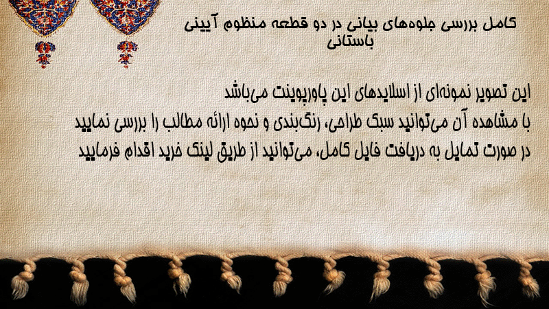 پاورپوینت کامل بررسی جلوههای بیانی در دو قطعه منظوم آیینی باستانی