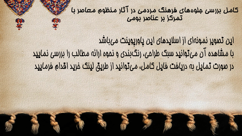 پاورپوینت کامل بررسی جلوههای فرهنگ مردمی در آثار منظوم معاصر با تمرکز بر عناصر بومی