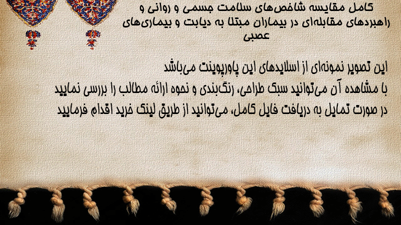 پاورپوینت کامل مقایسه شاخصهای سلامت جسمی و روانی و راهبردهای مقابلهای در بیماران مبتلا به دیابت و بیماریهای عصبی