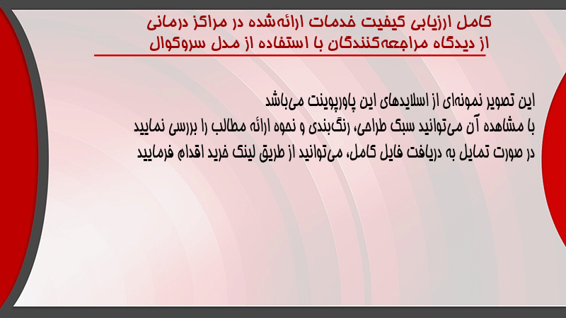 پاورپوینت کامل ارزیابی کیفیت خدمات ارائهشده در مراکز درمانی از دیدگاه مراجعهکنندگان با استفاده از مدل سروکوال