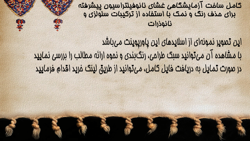 پاورپوینت کامل ساخت آزمایشگاهی غشای نانوفیلتراسیون پیشرفته برای حذف رنگ و نمک با استفاده از ترکیبات سلولزی و نانوذرات