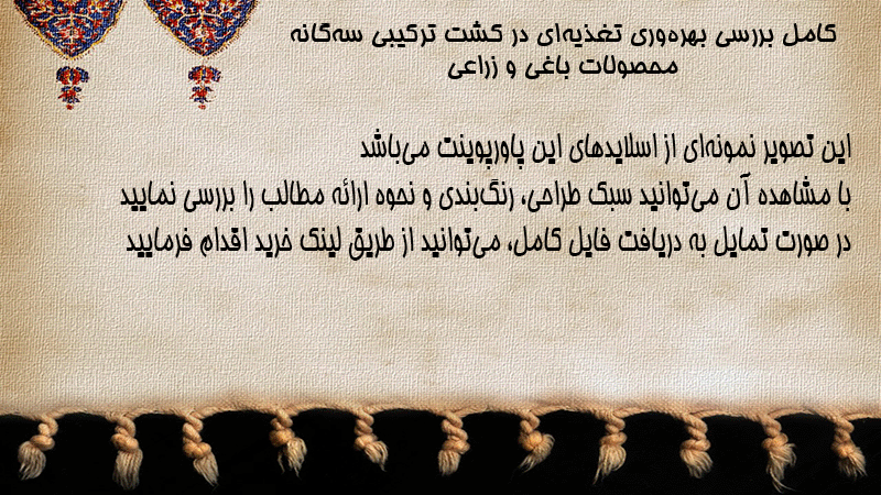 پاورپوینت کامل بررسی بهرهوری تغذیهای در کشت ترکیبی سهگانه محصولات باغی و زراعی