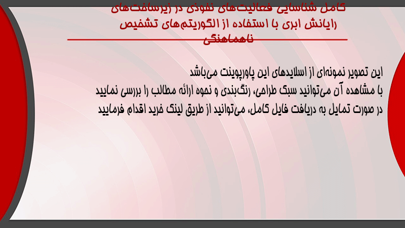 پاورپوینت کامل شناسایی فعالیتهای نفوذی در زیرساختهای رایانش ابری با استفاده از الگوریتمهای تشخیص ناهماهنگی