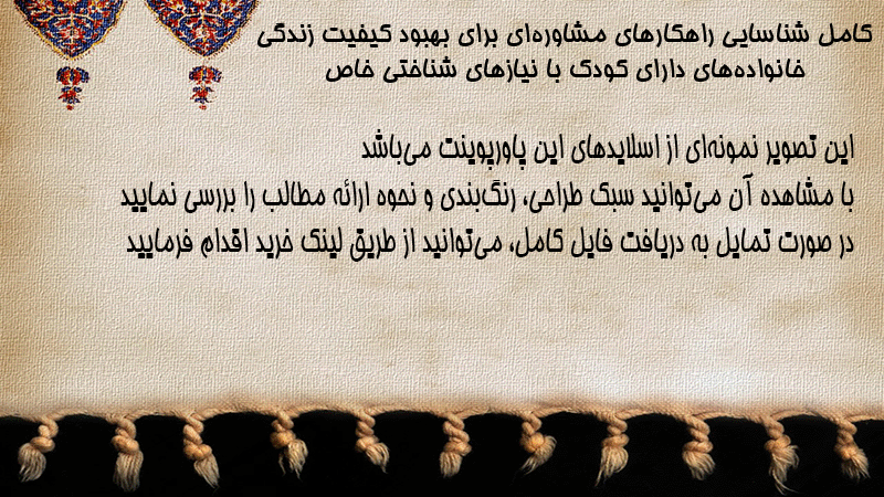 پاورپوینت کامل شناسایی راهکارهای مشاورهای برای بهبود کیفیت زندگی خانوادههای دارای کودک با نیازهای شناختی خاص