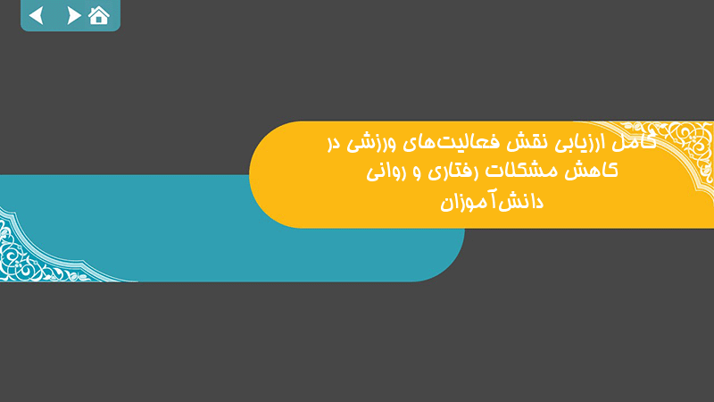 پاورپوینت کامل ارزیابی نقش فعالیتهای ورزشی در کاهش مشکلات رفتاری و روانی دانشآموزان