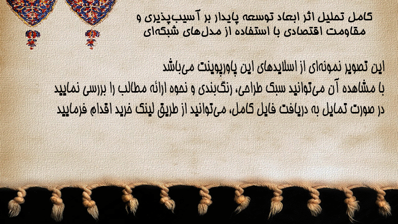 پاورپوینت کامل تحلیل اثر ابعاد توسعه پایدار بر آسیبپذیری و مقاومت اقتصادی با استفاده از مدلهای شبکهای