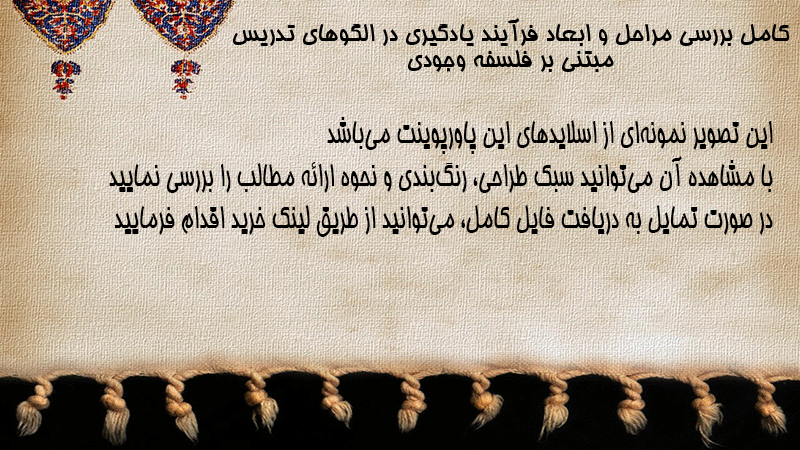 پاورپوینت کامل بررسی مراحل و ابعاد فرآیند یادگیری در الگوهای تدریس مبتنی بر فلسفه وجودی