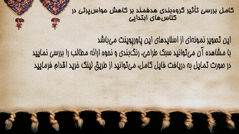 پاورپوینت کامل بررسی تأثیر گروهبندی هدفمند بر کاهش حواسپرتی در کلاسهای ابتدایی