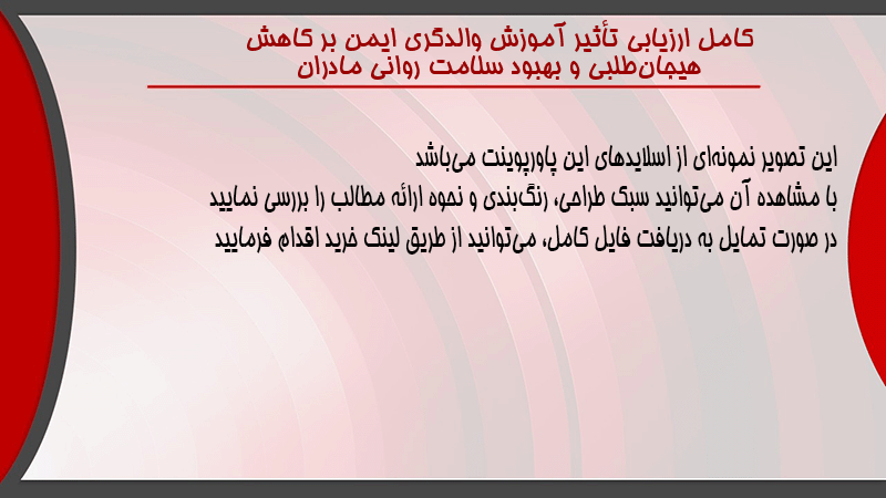 پاورپوینت کامل ارزیابی تأثیر آموزش والدگری ایمن بر کاهش هیجانطلبی و بهبود سلامت روانی مادران