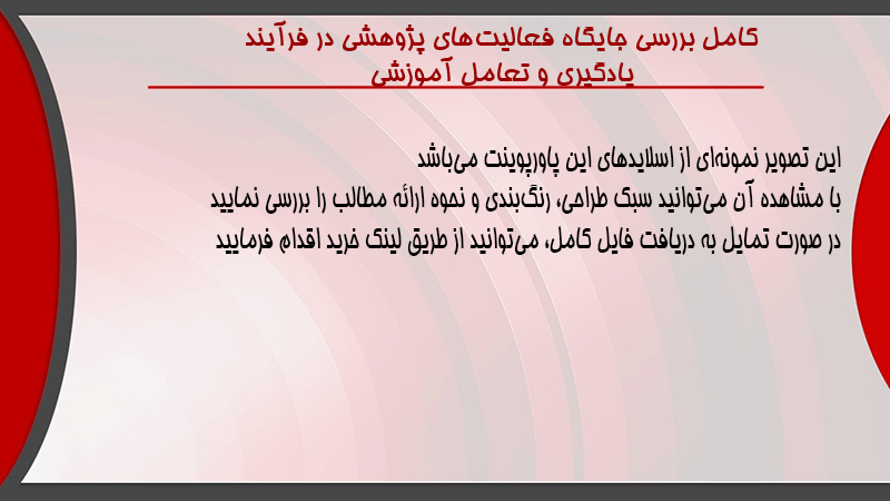 پاورپوینت کامل بررسی جایگاه فعالیتهای پژوهشی در فرآیند یادگیری و تعامل آموزشی