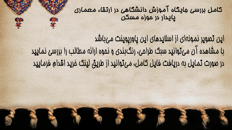 پاورپوینت کامل بررسی جایگاه آموزش دانشگاهی در ارتقاء معماری پایدار در حوزه مسکن
