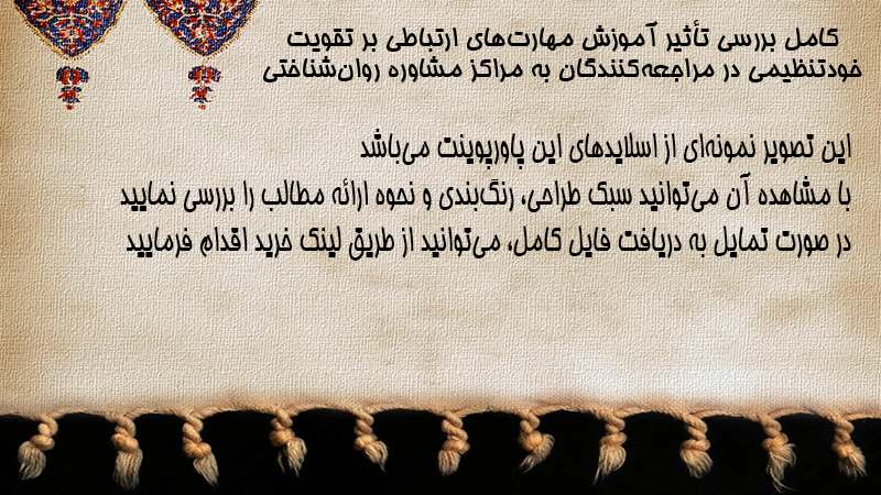 پاورپوینت کامل بررسی تأثیر آموزش مهارتهای ارتباطی بر تقویت خودتنظیمی در مراجعهکنندگان به مراکز مشاوره روانشناختی
