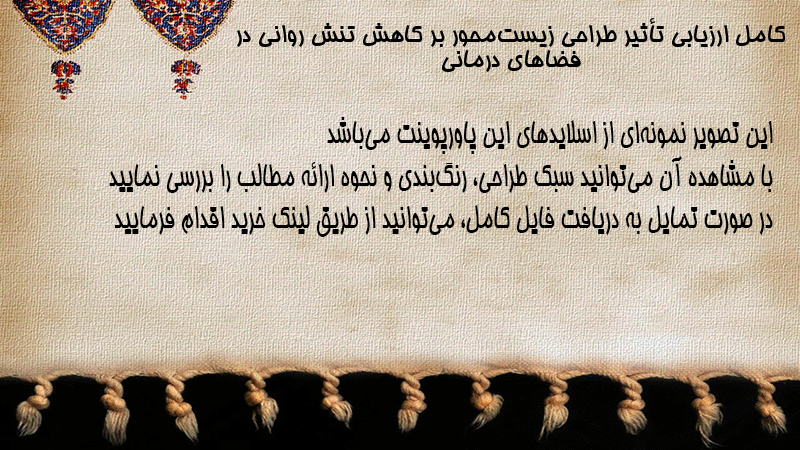 پاورپوینت کامل ارزیابی تأثیر طراحی زیستمحور بر کاهش تنش روانی در فضاهای درمانی