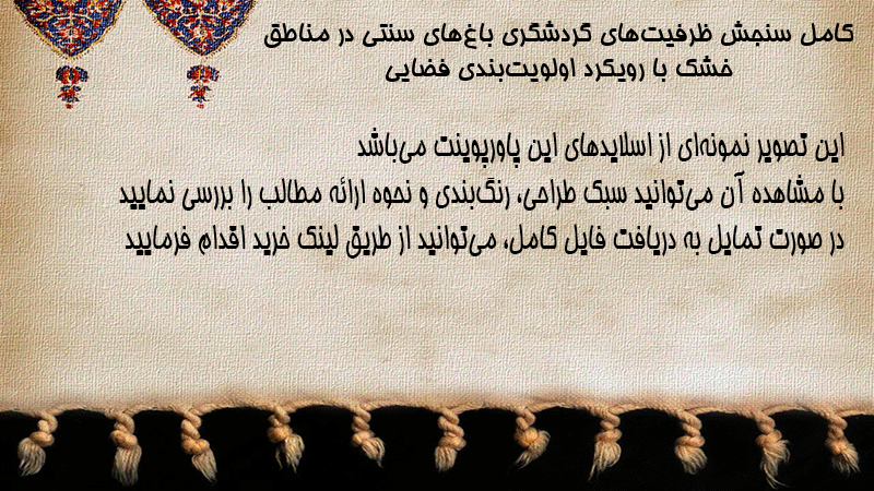 پاورپوینت کامل سنجش ظرفیتهای گردشگری باغهای سنتی در مناطق خشک با رویکرد اولویتبندی فضایی
