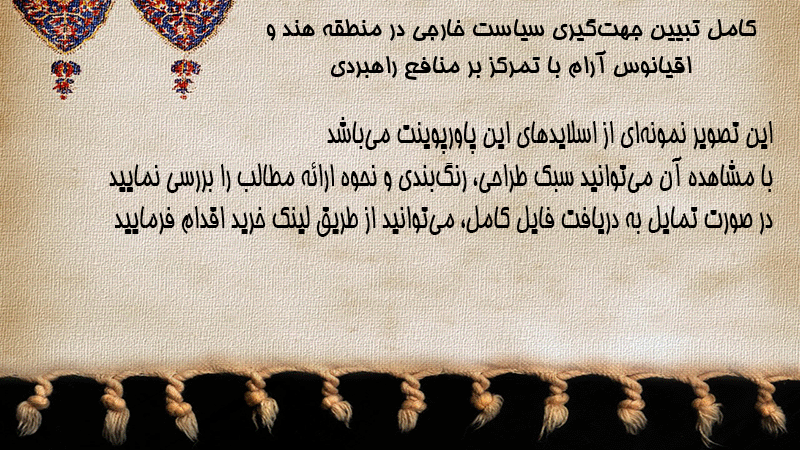 پاورپوینت کامل تبیین جهتگیری سیاست خارجی در منطقه هند و اقیانوس آرام با تمرکز بر منافع راهبردی