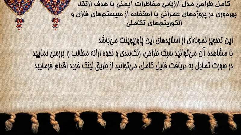 پاورپوینت کامل طراحی مدل ارزیابی مخاطرات ایمنی با هدف ارتقاء بهرهوری در پروژههای عمرانی با استفاده از سیستمهای فازی و الگوریتمهای تکاملی