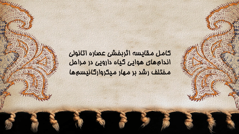 پاورپوینت کامل مقایسه اثربخشی عصاره اتانولی اندامهای هوایی گیاه دارویی در مراحل مختلف رشد بر مهار میکروارگانیسمها