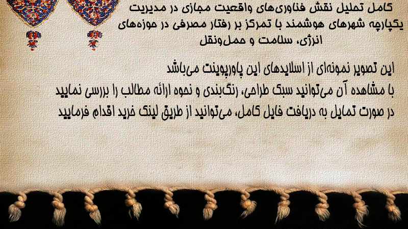 پاورپوینت کامل تحلیل نقش فناوریهای واقعیت مجازی در مدیریت یکپارچه شهرهای هوشمند با تمرکز بر رفتار مصرفی در حوزههای انرژی، سلامت و حملونقل