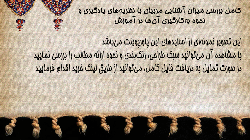 پاورپوینت کامل بررسی میزان آشنایی مربیان با نظریههای یادگیری و نحوه بهکارگیری آنها در آموزش