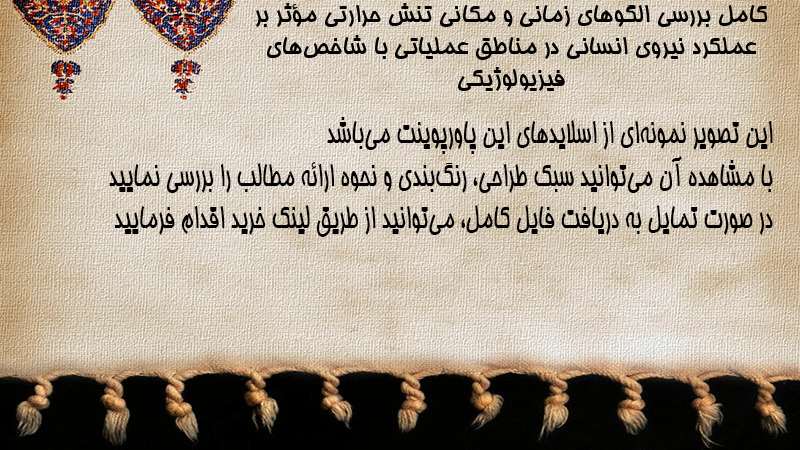 پاورپوینت کامل بررسی الگوهای زمانی و مکانی تنش حرارتی مؤثر بر عملکرد نیروی انسانی در مناطق عملیاتی با شاخصهای فیزیولوژیکی