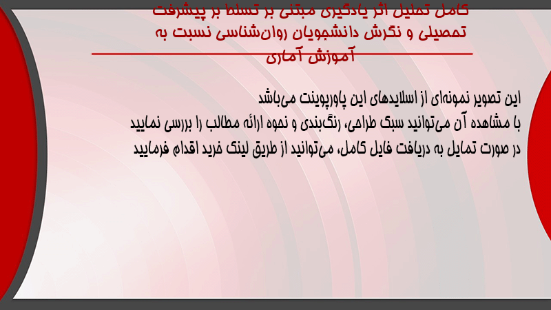 پاورپوینت کامل تحلیل اثر یادگیری مبتنی بر تسلط بر پیشرفت تحصیلی و نگرش دانشجویان روانشناسی نسبت به آموزش آماری
