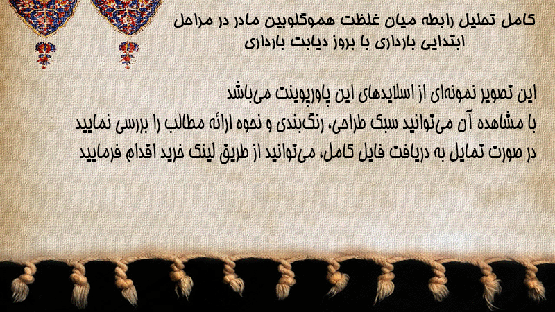 پاورپوینت کامل تحلیل رابطه میان غلظت هموگلوبین مادر در مراحل ابتدایی بارداری با بروز دیابت بارداری