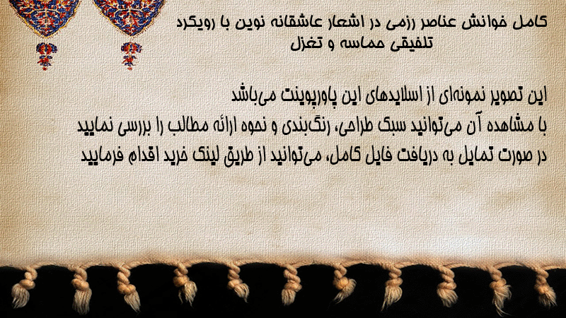 پاورپوینت کامل خوانش عناصر رزمی در اشعار عاشقانه نوین با رویکرد تلفیقی حماسه و تغزل