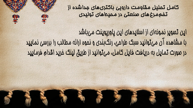 پاورپوینت کامل تحلیل مقاومت دارویی باکتریهای جداشده از تخممرغهای صنعتی در محیطهای تولیدی