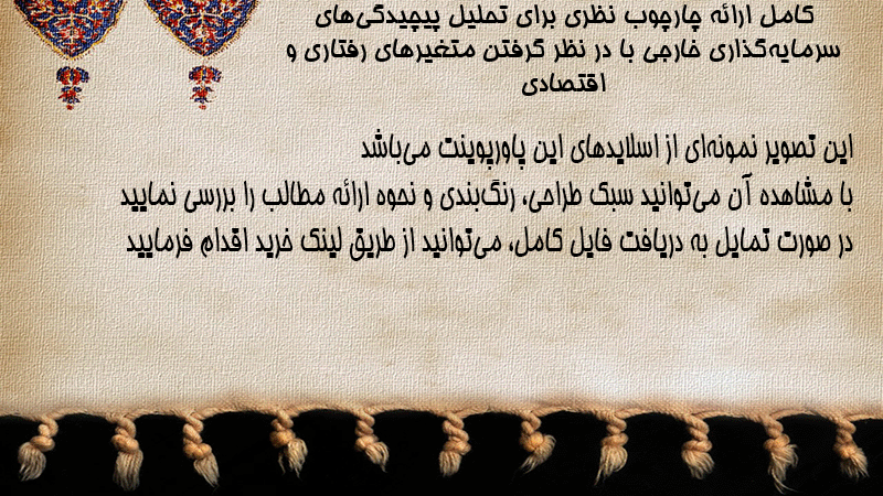 پاورپوینت کامل ارائه چارچوب نظری برای تحلیل پیچیدگیهای سرمایهگذاری خارجی با در نظر گرفتن متغیرهای رفتاری و اقتصادی
