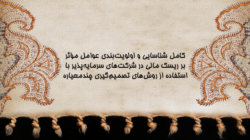 پاورپوینت کامل شناسایی و اولویتبندی عوامل مؤثر بر ریسک مالی در شرکتهای سرمایهپذیر با استفاده از روشهای تصمیمگیری چندمعیاره