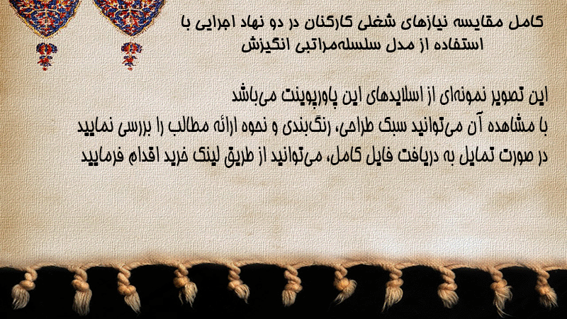 پاورپوینت کامل مقایسه نیازهای شغلی کارکنان در دو نهاد اجرایی با استفاده از مدل سلسلهمراتبی انگیزش