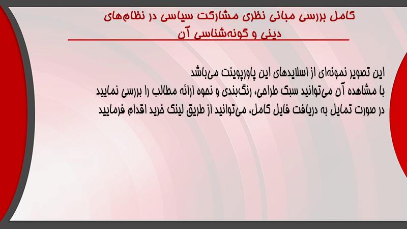 پاورپوینت کامل بررسی مبانی نظری مشارکت سیاسی در نظامهای دینی و گونهشناسی آن