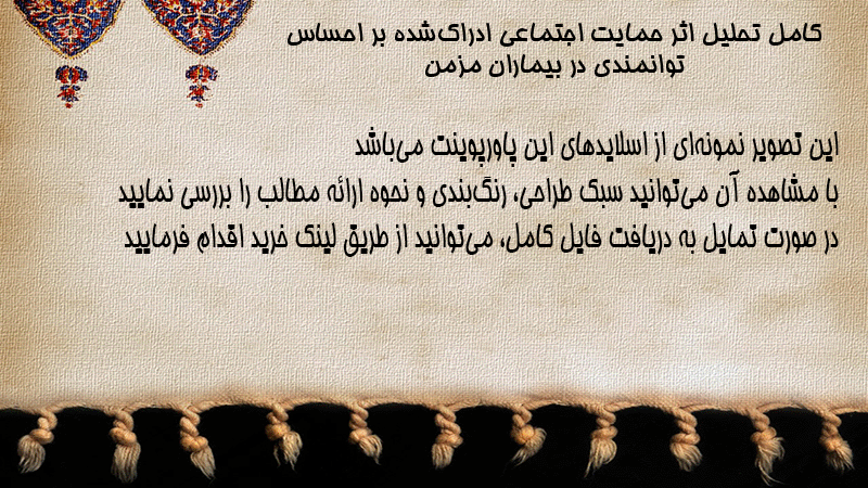 پاورپوینت کامل تحلیل اثر حمایت اجتماعی ادراکشده بر احساس توانمندی در بیماران مزمن