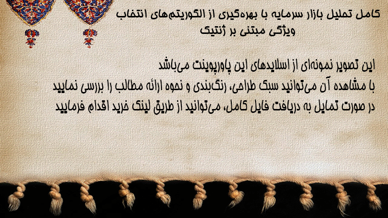 پاورپوینت کامل تحلیل بازار سرمایه با بهرهگیری از الگوریتمهای انتخاب ویژگی مبتنی بر ژنتیک