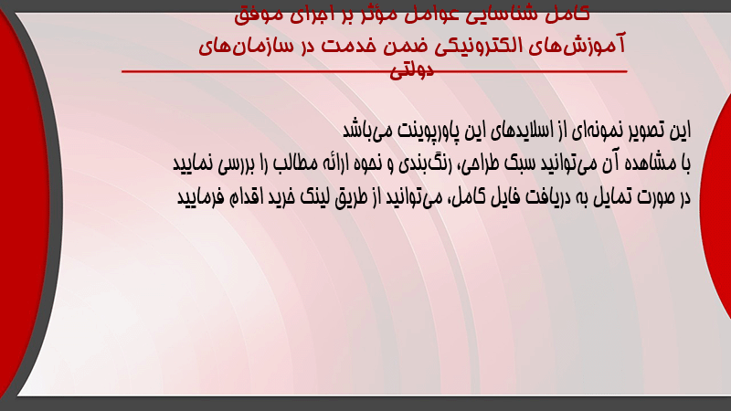 پاورپوینت کامل شناسایی عوامل مؤثر بر اجرای موفق آموزشهای الکترونیکی ضمن خدمت در سازمانهای دولتی