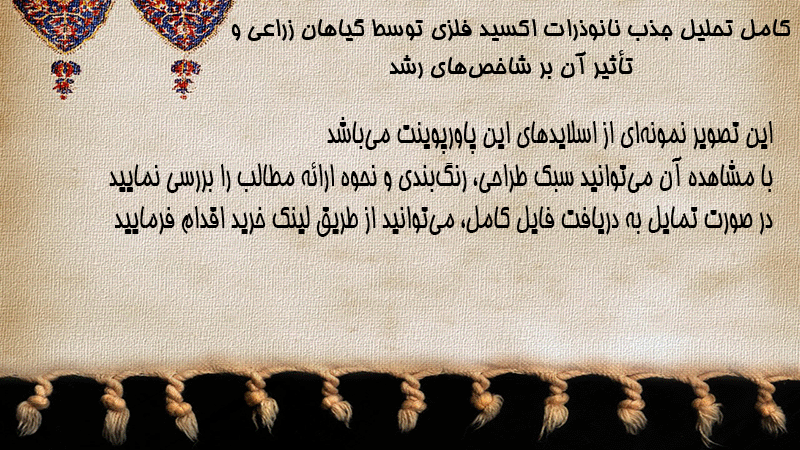 پاورپوینت کامل تحلیل جذب نانوذرات اکسید فلزی توسط گیاهان زراعی و تأثیر آن بر شاخصهای رشد