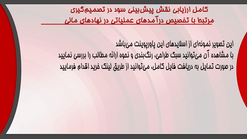پاورپوینت کامل ارزیابی نقش پیشبینی سود در تصمیمگیری مرتبط با تخصیص درآمدهای عملیاتی در نهادهای مالی