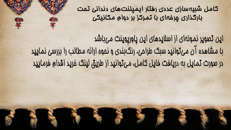 پاورپوینت کامل شبیهسازی عددی رفتار ایمپلنتهای دندانی تحت بارگذاری چرخهای با تمرکز بر دوام مکانیکی