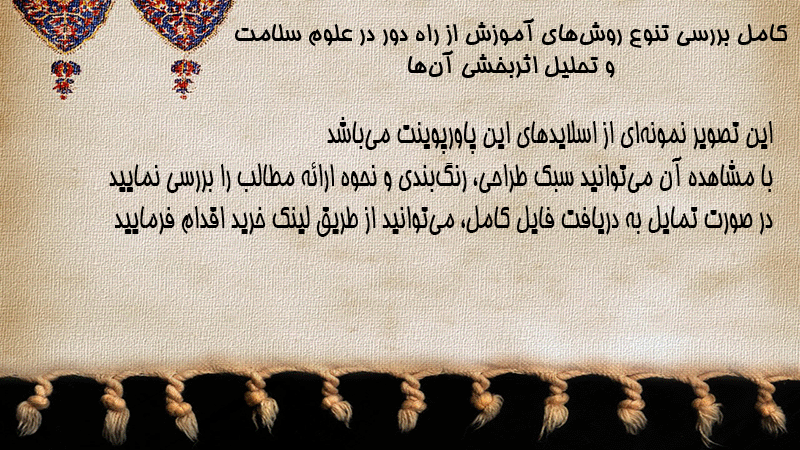 پاورپوینت کامل بررسی تنوع روشهای آموزش از راه دور در علوم سلامت و تحلیل اثربخشی آنها