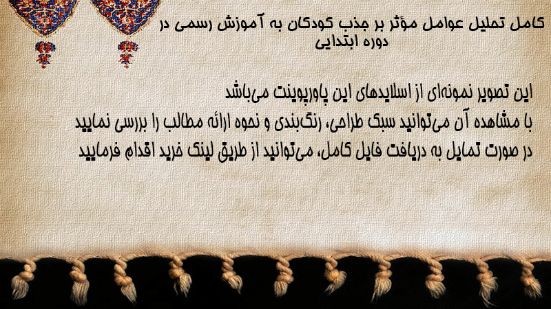 پاورپوینت کامل تحلیل عوامل مؤثر بر جذب کودکان به آموزش رسمی در دوره ابتدایی